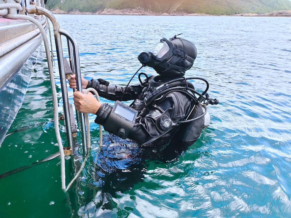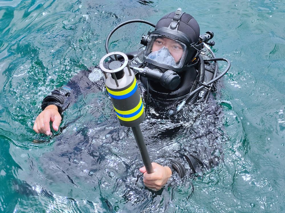 在香港橋咀某海域,潛水團隊部署了潛水通信定位系統,實現了水面人員與水下潛水員之間清晰、穩定的語音通信,雙方能夠即時接收語音信息。潛水員通過布放可標記水下位置的水下信標,為后續快速到達水下作業位置做好引導。同時,水面人員可實時查看潛水員的位置,顯著提升了潛水作業效率。