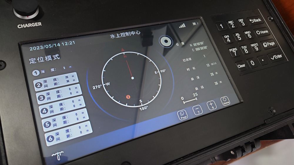 在2023年福建漳州圣杯嶼元代沉船安置點考古發掘項目中,志藍技術提供的水下通信導航系統為水下考古團隊提供了技術支持。潛水員佩戴定位導航終端,水上工作人員可通過大屏幕實時監控潛水員的位置,從而有效保證保障考古作業的安全。