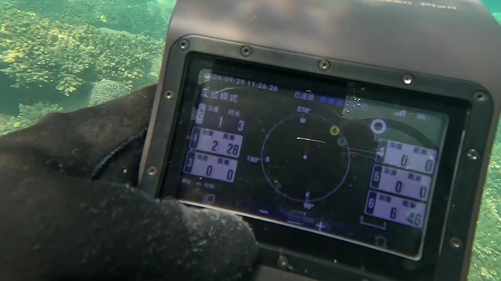 科研潛水團(tuán)隊(duì)在深圳南澳某海域執(zhí)行水下生態(tài)調(diào)查、海洋測繪等科研作業(yè)活動,需要標(biāo)記作業(yè)區(qū)域,便于后續(xù)作業(yè)管理。團(tuán)隊(duì)使用潛水導(dǎo)航電腦Pro,尋找到被水下信標(biāo)所標(biāo)記的水下目標(biāo)地點(diǎn),順利完成水下科研作業(yè)任務(wù)。