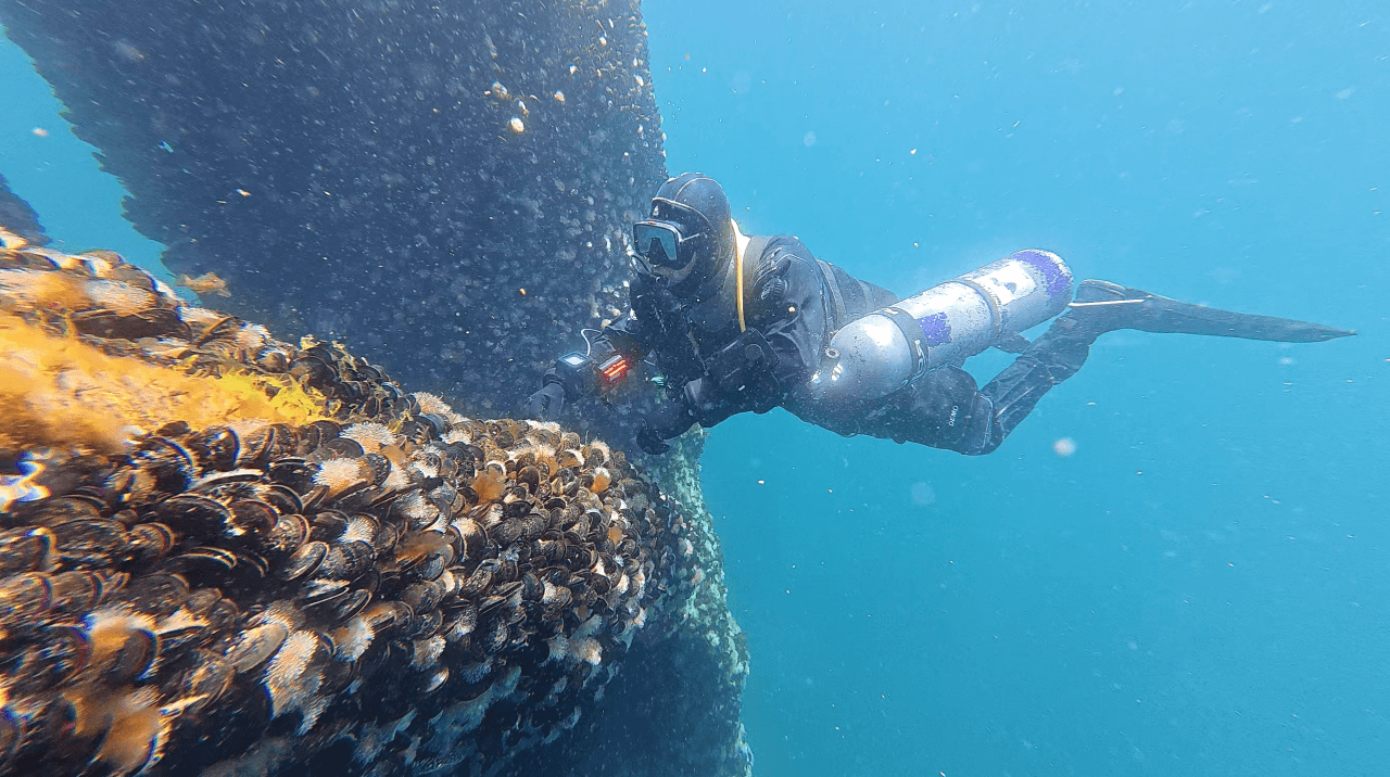 在渤海灣海洋風電場,技術潛水員在風電塔基礎結構下執行水下探索任務時,意外發現遠海許氏平鮋種群,對區域海洋生態多樣性研究具有重要意義。任務過程中,志藍技術提供的水下通信導航系統構建了穩定的水下保障環境,潛水員彼此掌握位置動態,有效提升安全性與協同效率。